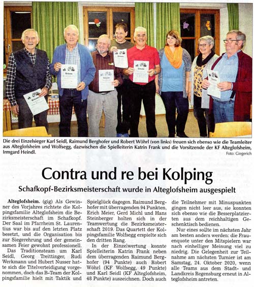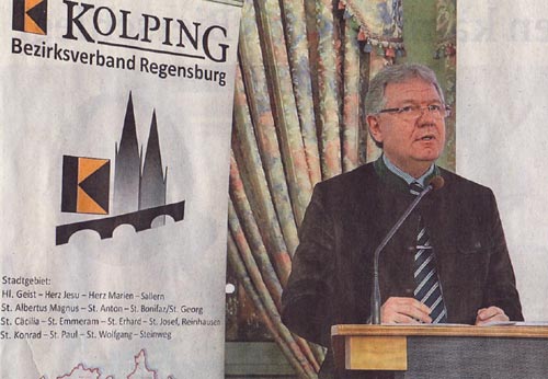 REGENSBURG. Vor 90 Jahren wurde der Kolping Bezirksverband Regensburg aus der Taufe gehoben. Zwei Weltkriege überdauerte der Verband mit dem festen Glauben in die Leitsätze des Vorbildes Adolph Kolping. Dabei prosperierte der Bezirksverband und kann nun auf ein beachtliches Werk der Nächstenliebe zurückblicken. Egal, ob Mohammed oder Mayer Es sei klar, dass der Bezirksverband sich in den 90 Jahren seines Bestehens ständig weiterentwickeln musste. "Wer nicht bereit ist, sich zu verändern, wird verlieren, was er bewahren möchte", sagte Süß. In der Gemeinschaft des Bezirksverbands spüre man, dass Kolping weiter lebe. ![]()