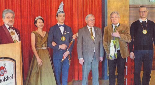 Faschingsorden für Huber Der Bürgermeister dankte an dieser Stelle auch den Mitarbeitern der Stadtverwaltung für ihren Einsatz. Bei Besuchen in anderen Kommunen könne er immer wieder feststellen, dass die Stadtverwaltung in Regensburg effizient ar- beitet, lobte Huber. In der öffentlichen Diskus- sion über politische Konzepte wünschte sich Bürgermeister Huber mehr Miteinander. Die Stadtpolitiker sollten öfter den eingangs zitier- ten Spruch Adolph Kolpings beherzigen. Sol- chermaßen auf Harmonie eingestimmt, freuten sich Bürgermeister Huber und Bischofshof-Vertriebsleiter Nußbaumer über die Verleihung des Faschingsordens der Lusticania durch Prinzessin Anna I. und Prinz Benedikt I. sowie den Vize-Präsidenten der Lusticania. |