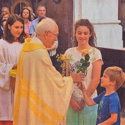 Bild rechts: Primiz im heimatlichen Trasching. Rafaela, die älteste seiner 24 Nichten und Neffen, war die Primizbraut. Fotos: Gabi Hueber-Lutz